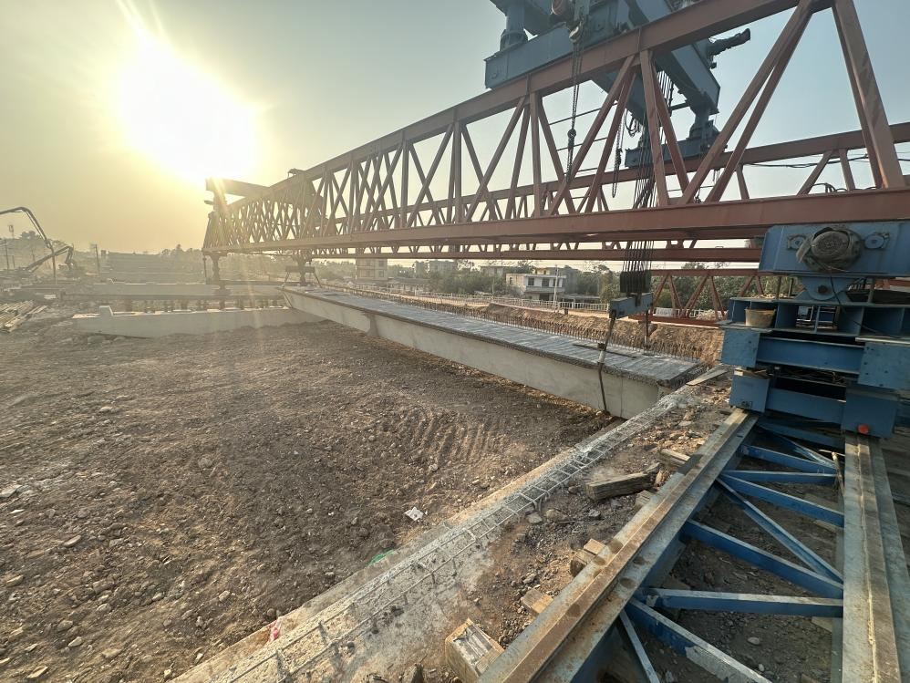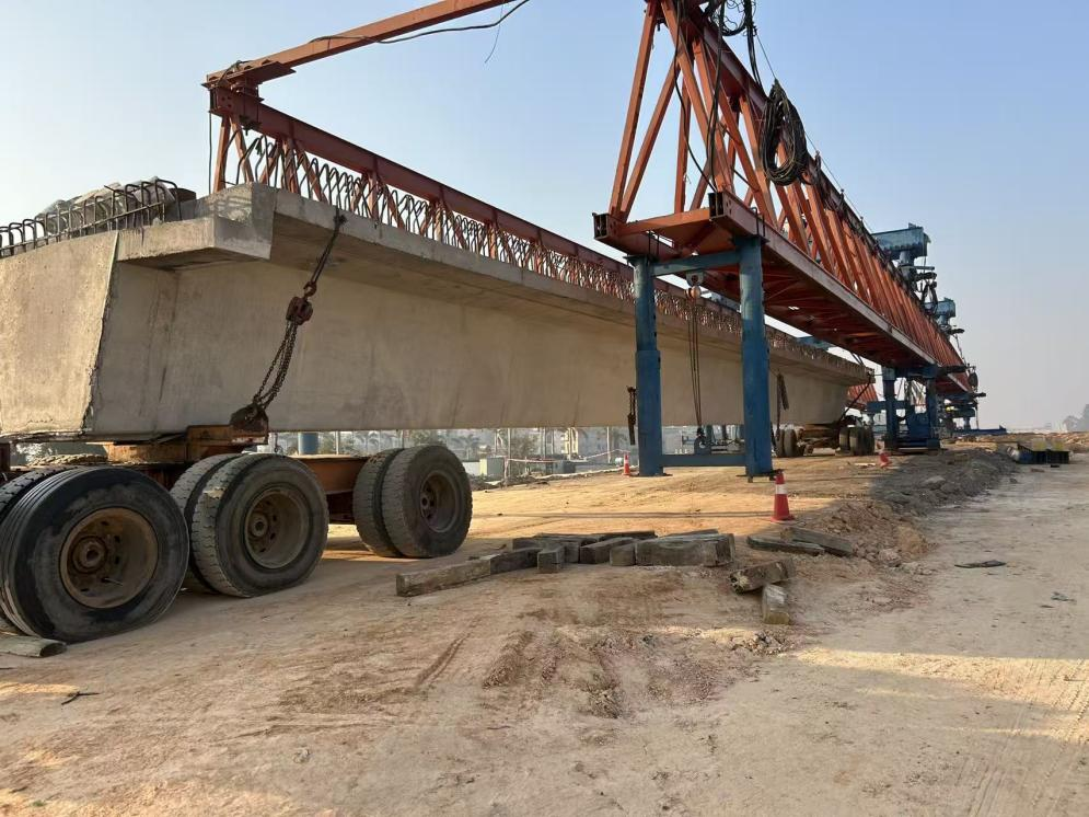 2026年1月13日,隨著第一片箱梁精準落位,由市路港公司組織建設的鐵山港區(qū)濱海大道(港口段)工程(鐵路跨線橋工程)正式邁入箱梁架設施工階段。